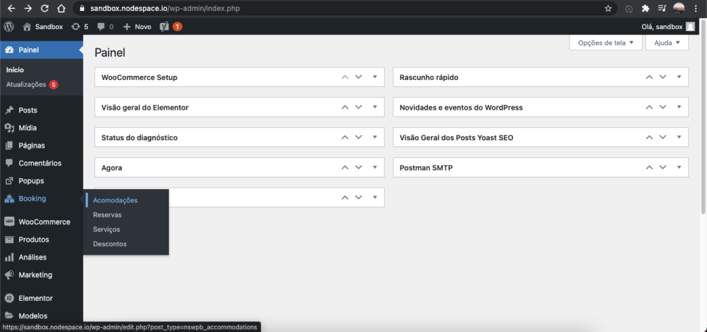 2 – No menu lateral esquerdo, clique em Booking -> Acomodações