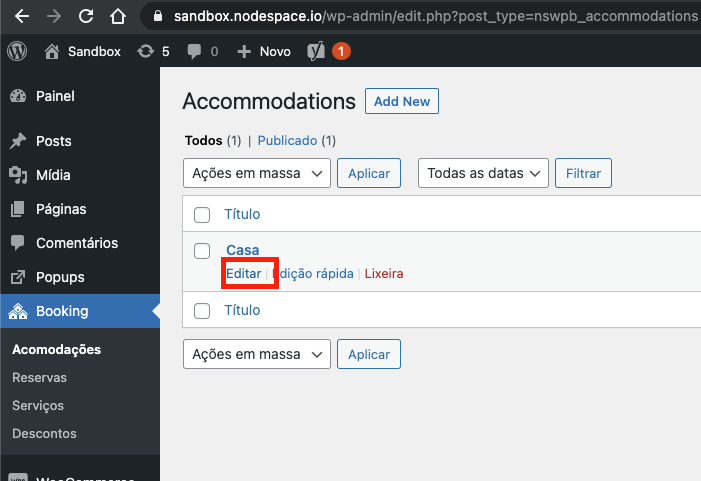 3 – Clique em Editar na acomodação que deseja gerenciar.